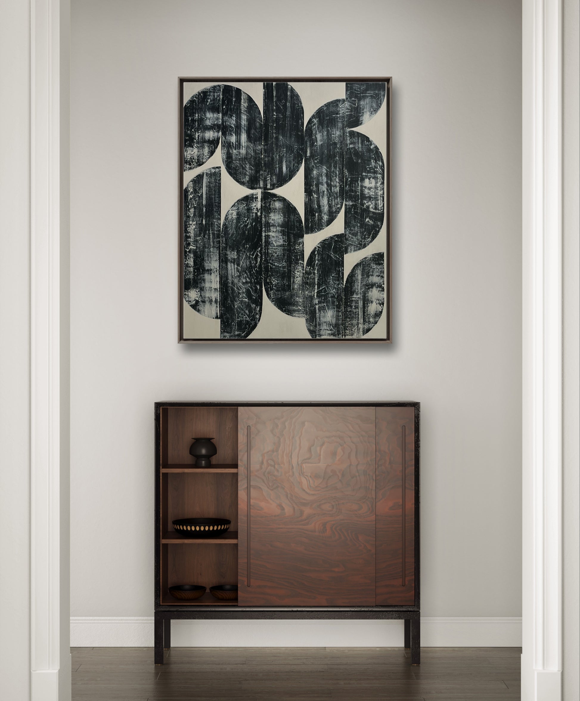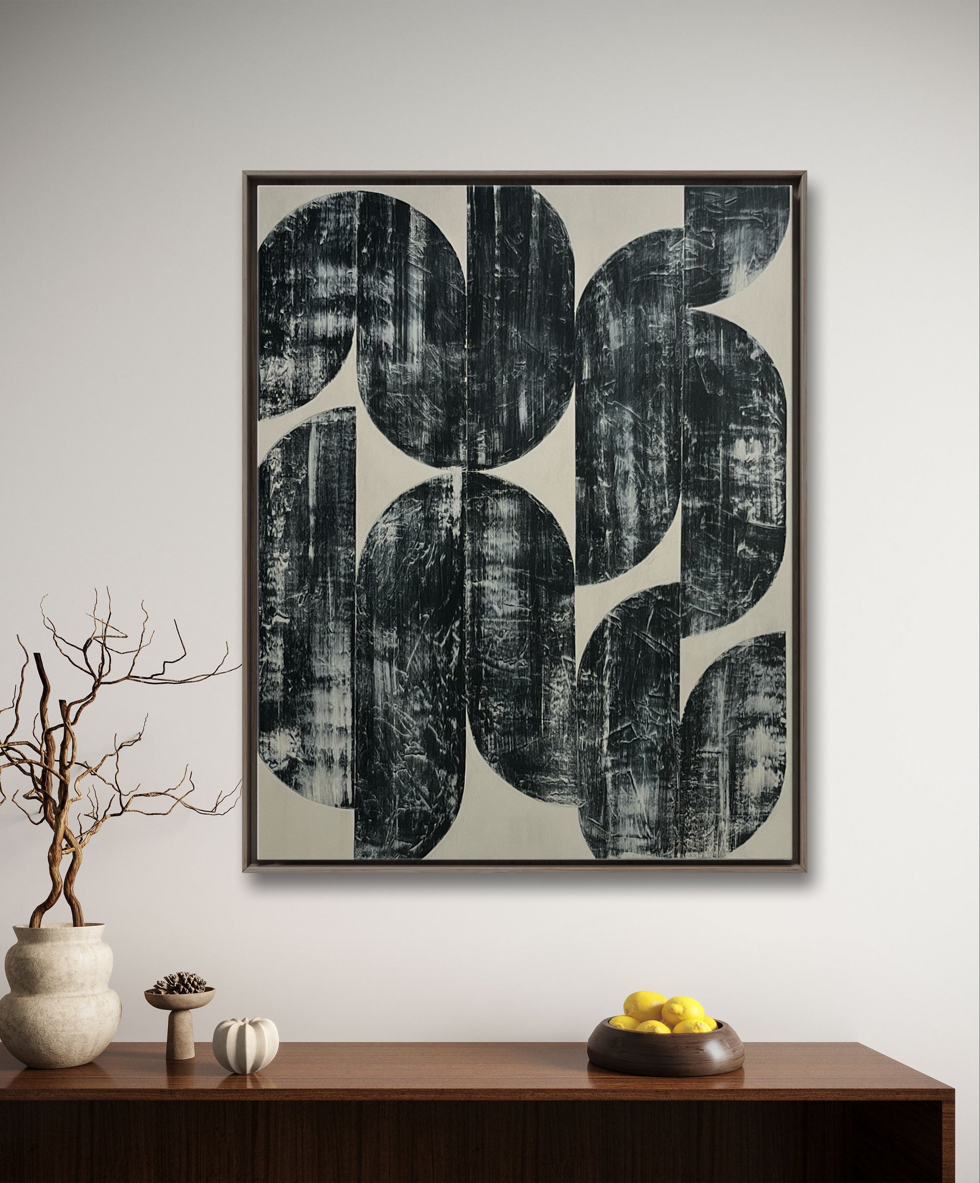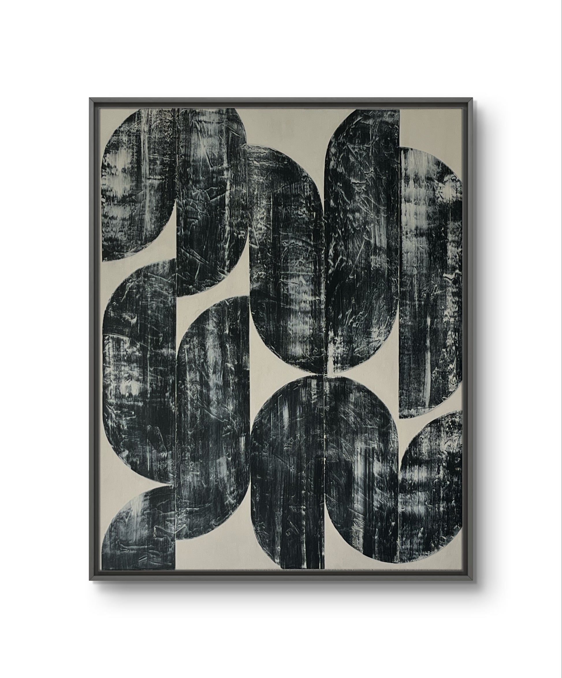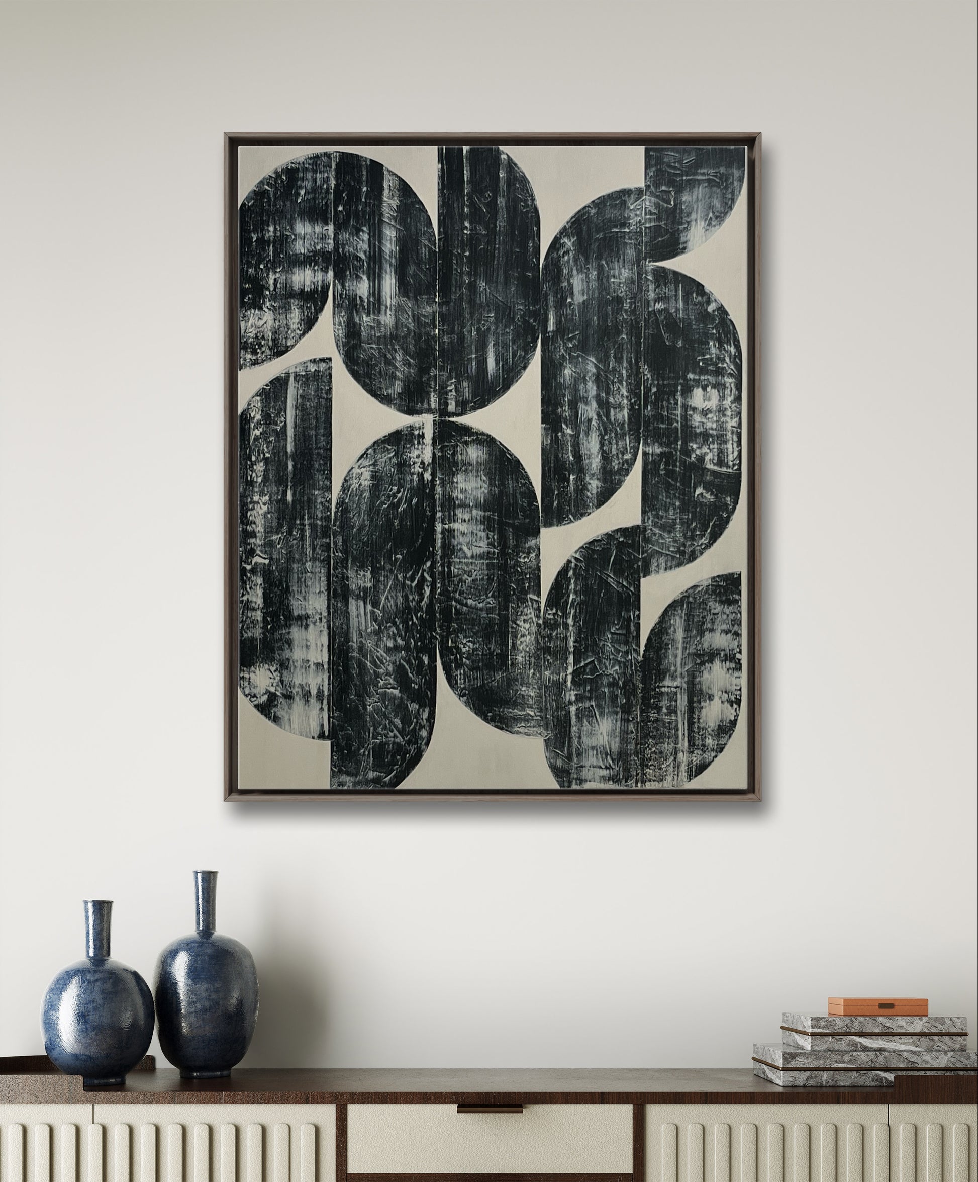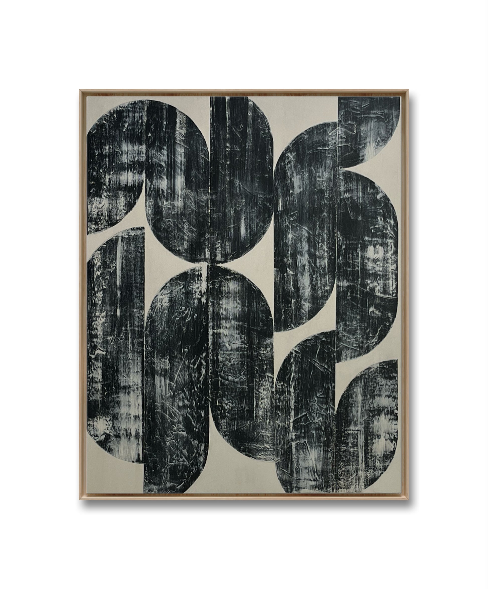 Original acrylic mixed media on canvas, sealed with protective matte varnish. 24" x 30" x .75" (Canvas size), Signed on the back. With a black floating frame, ready to hang.
