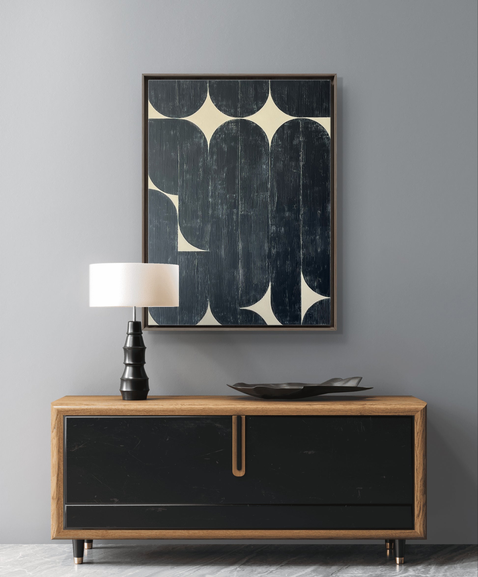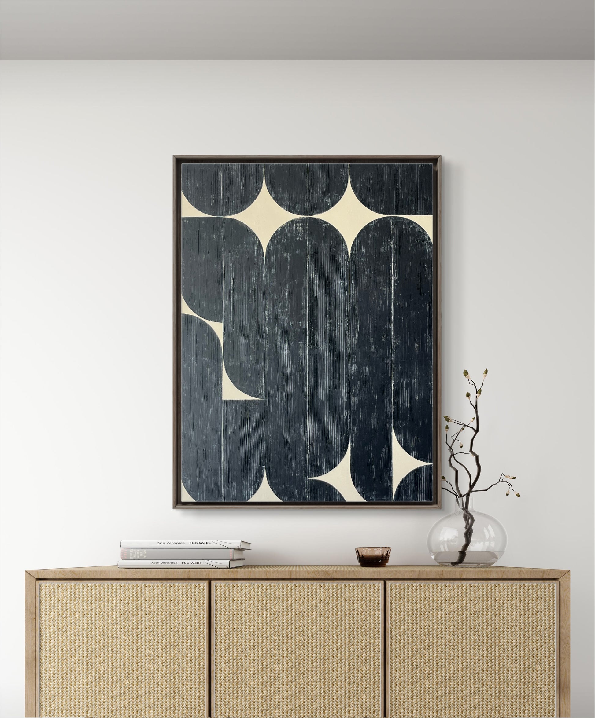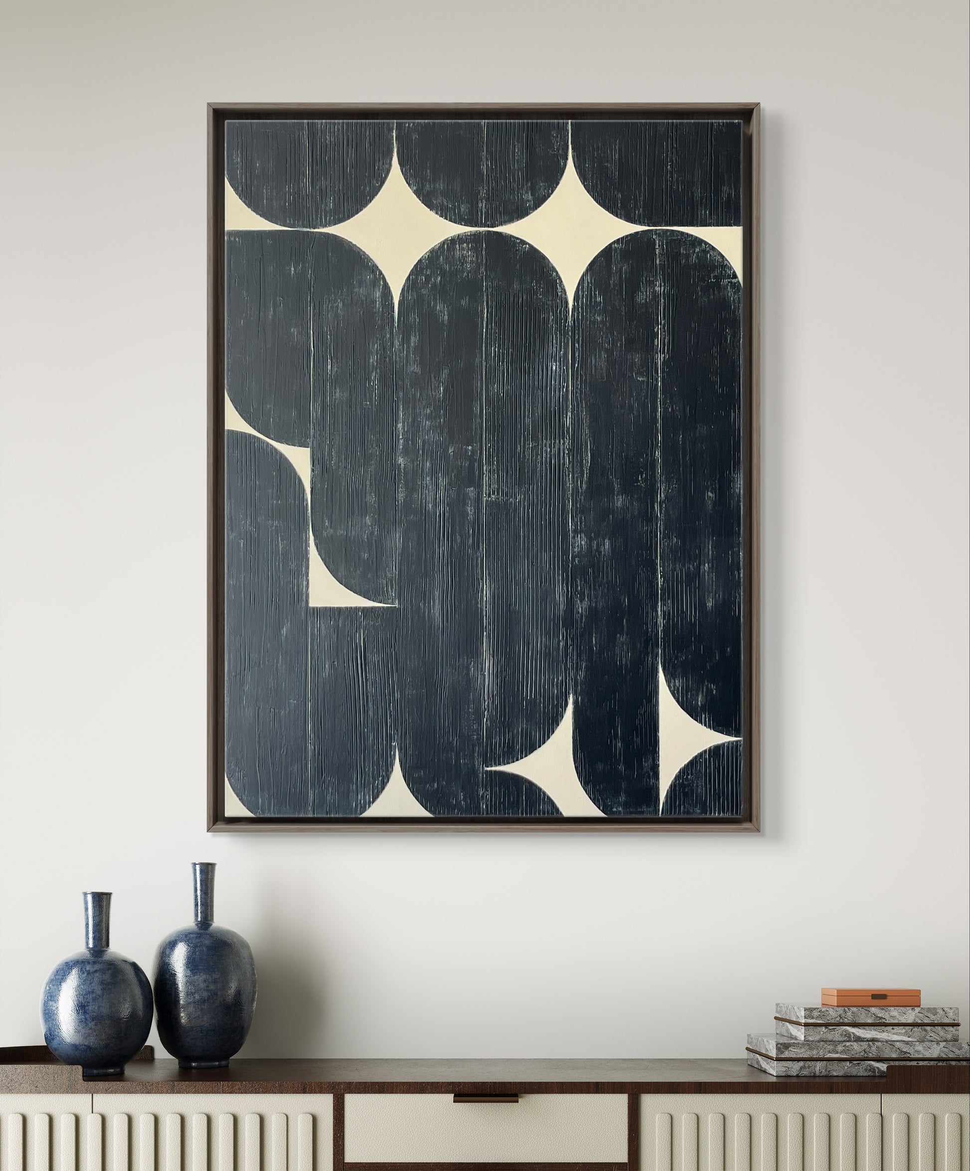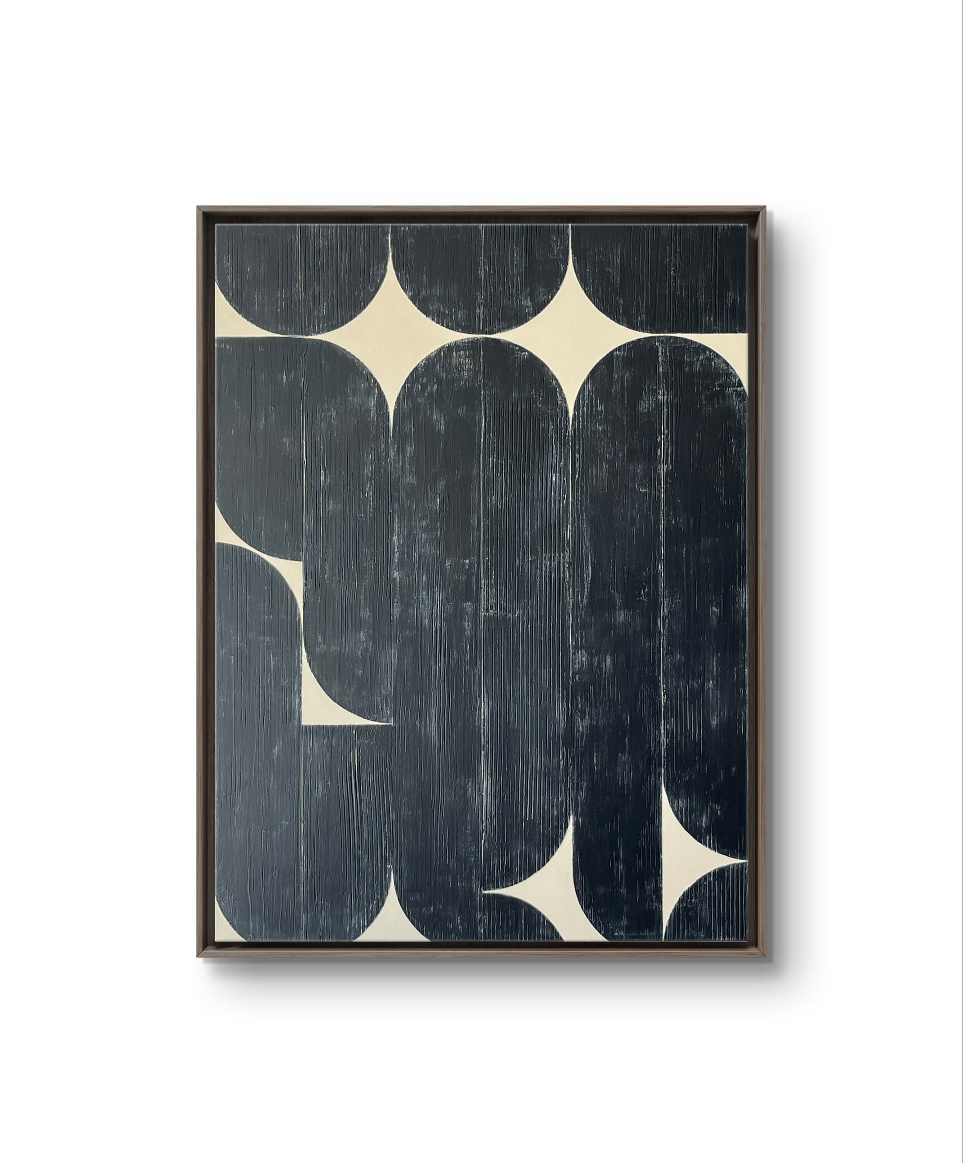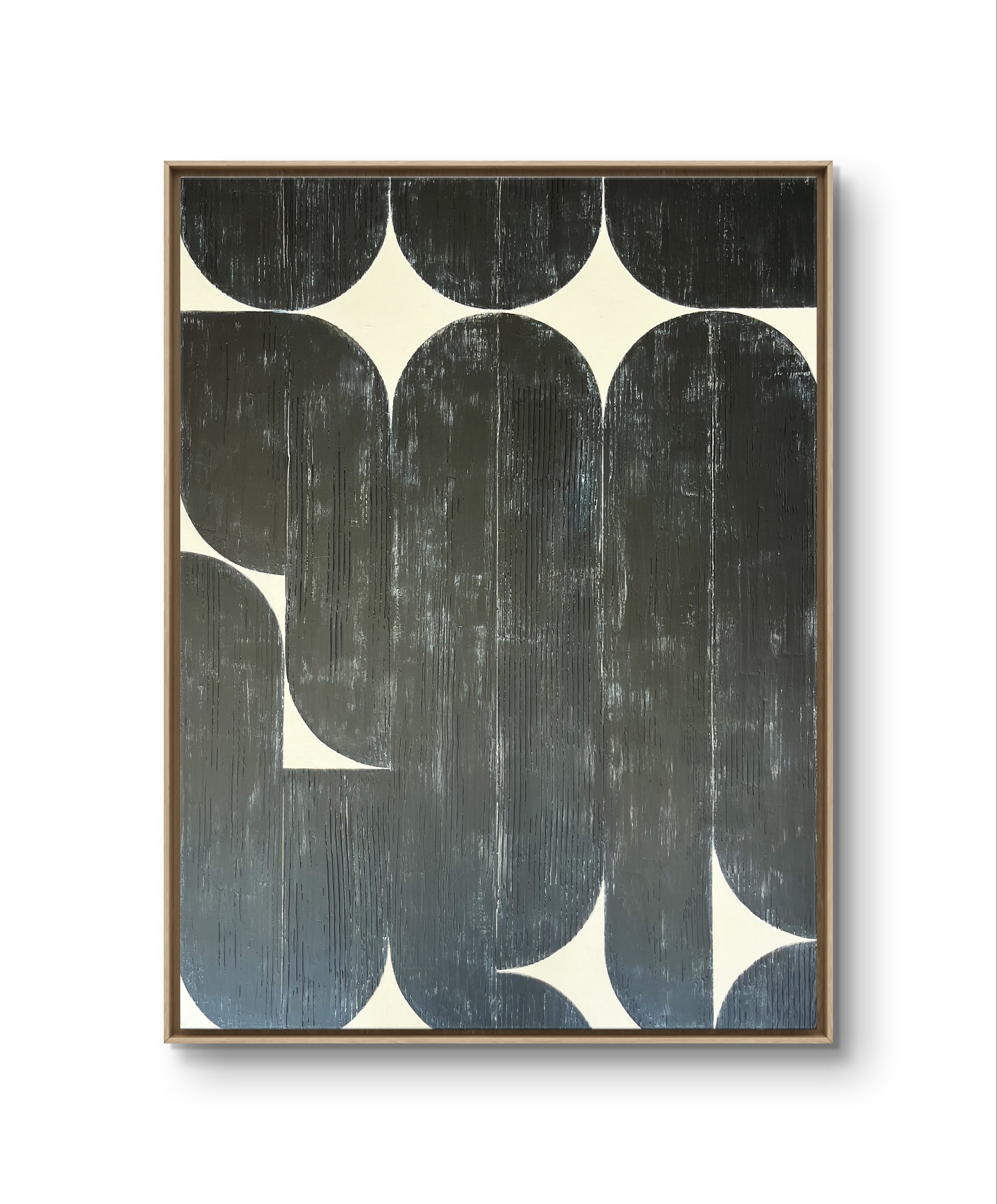 Original acrylic mixed media on canvas, sealed with protective matte varnish. 30" x 40" x 1.5" (Canvas size), Signed on the back. With a clear finished maple floating frame ready to hang.