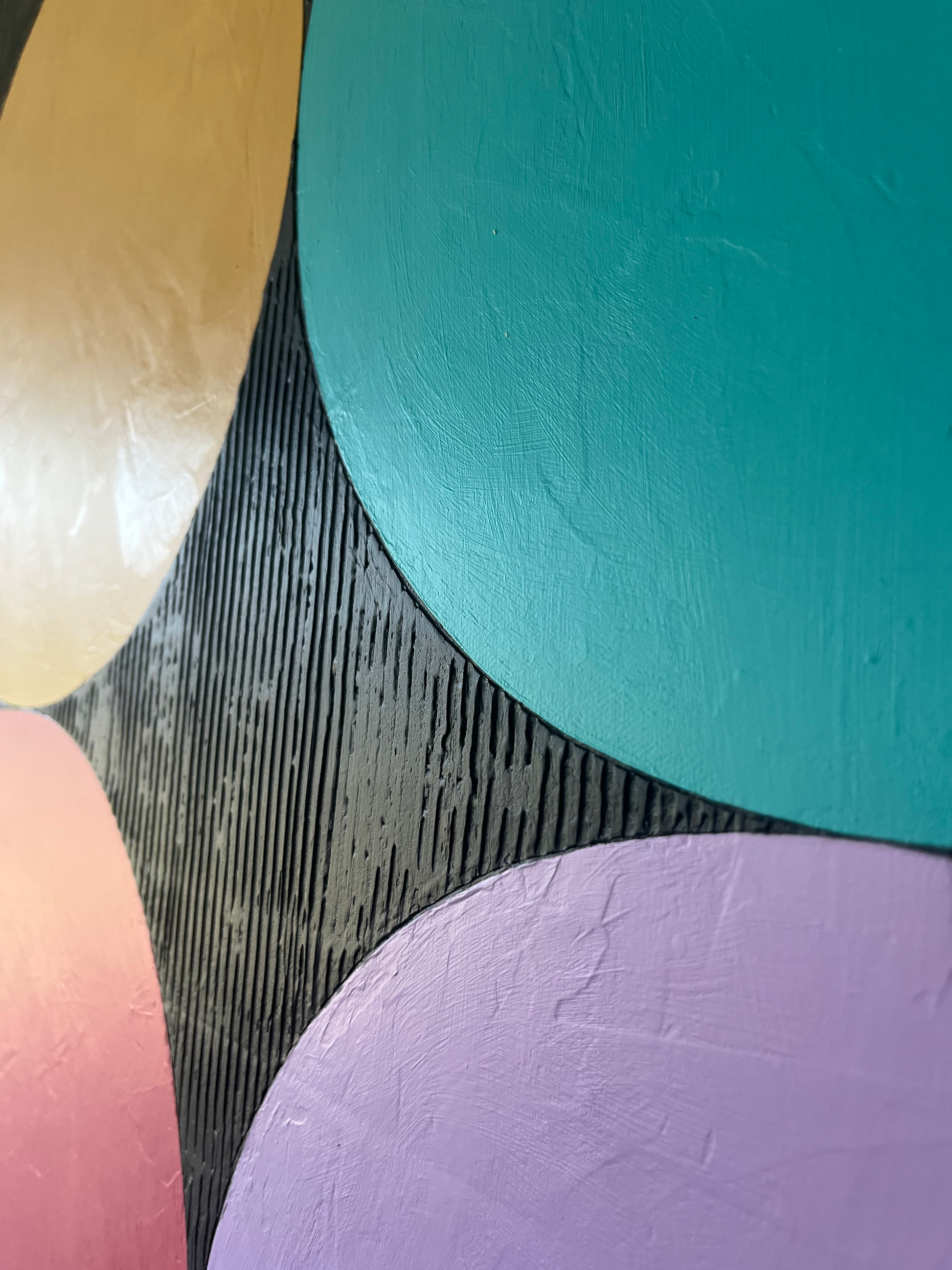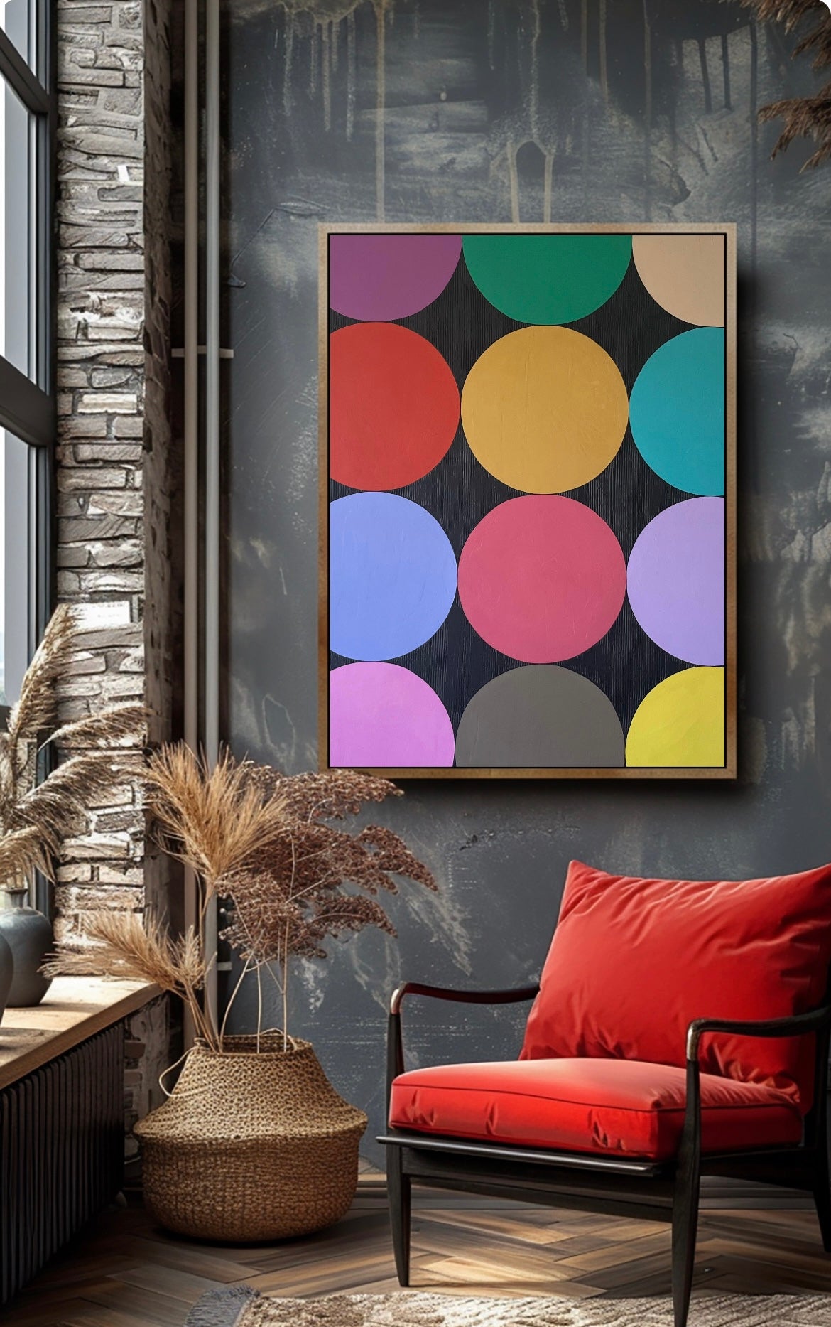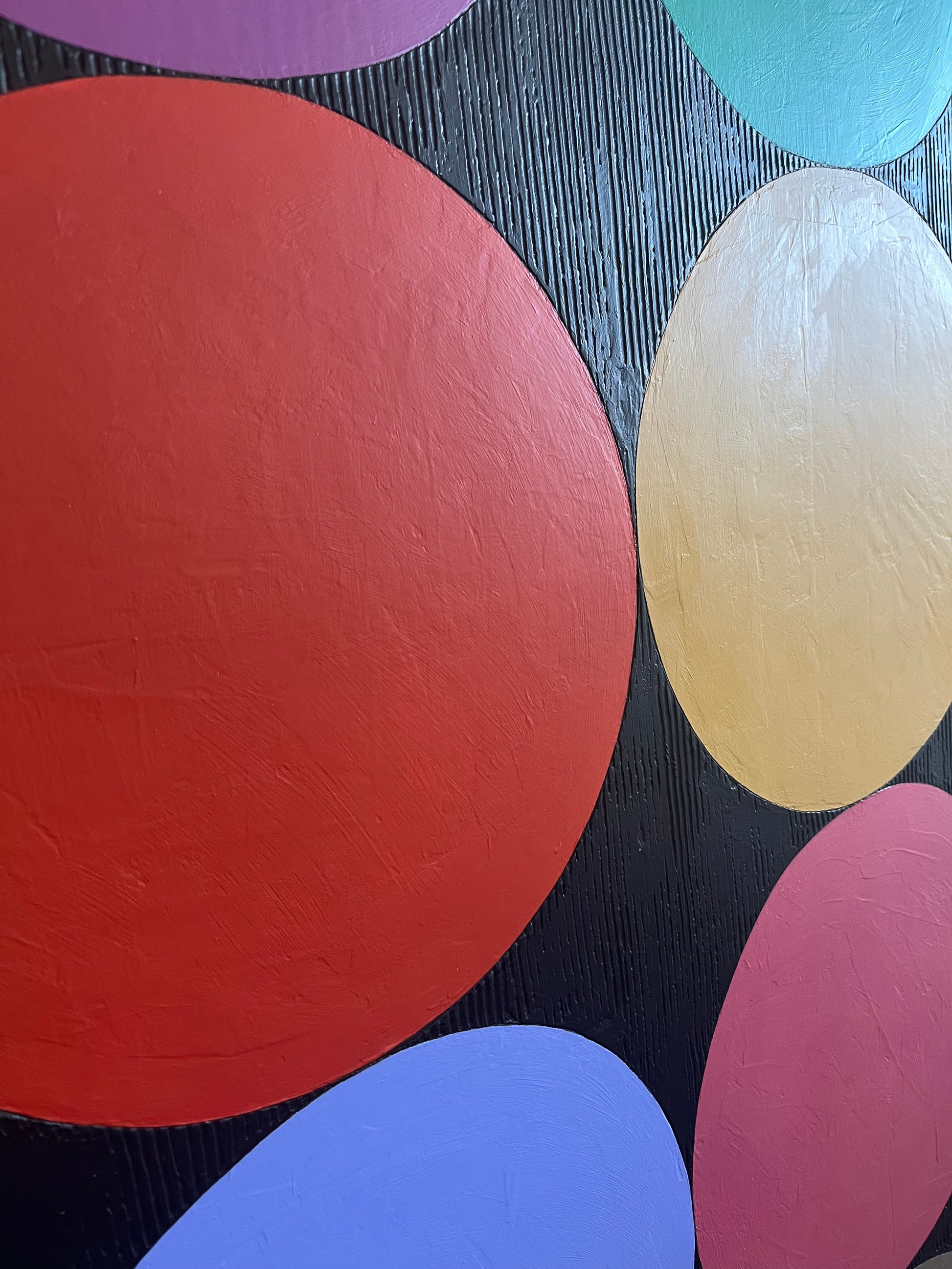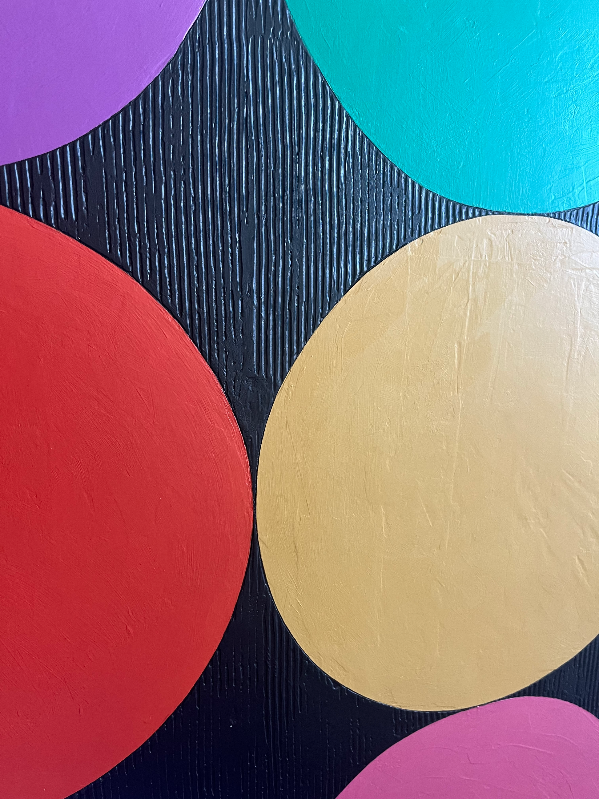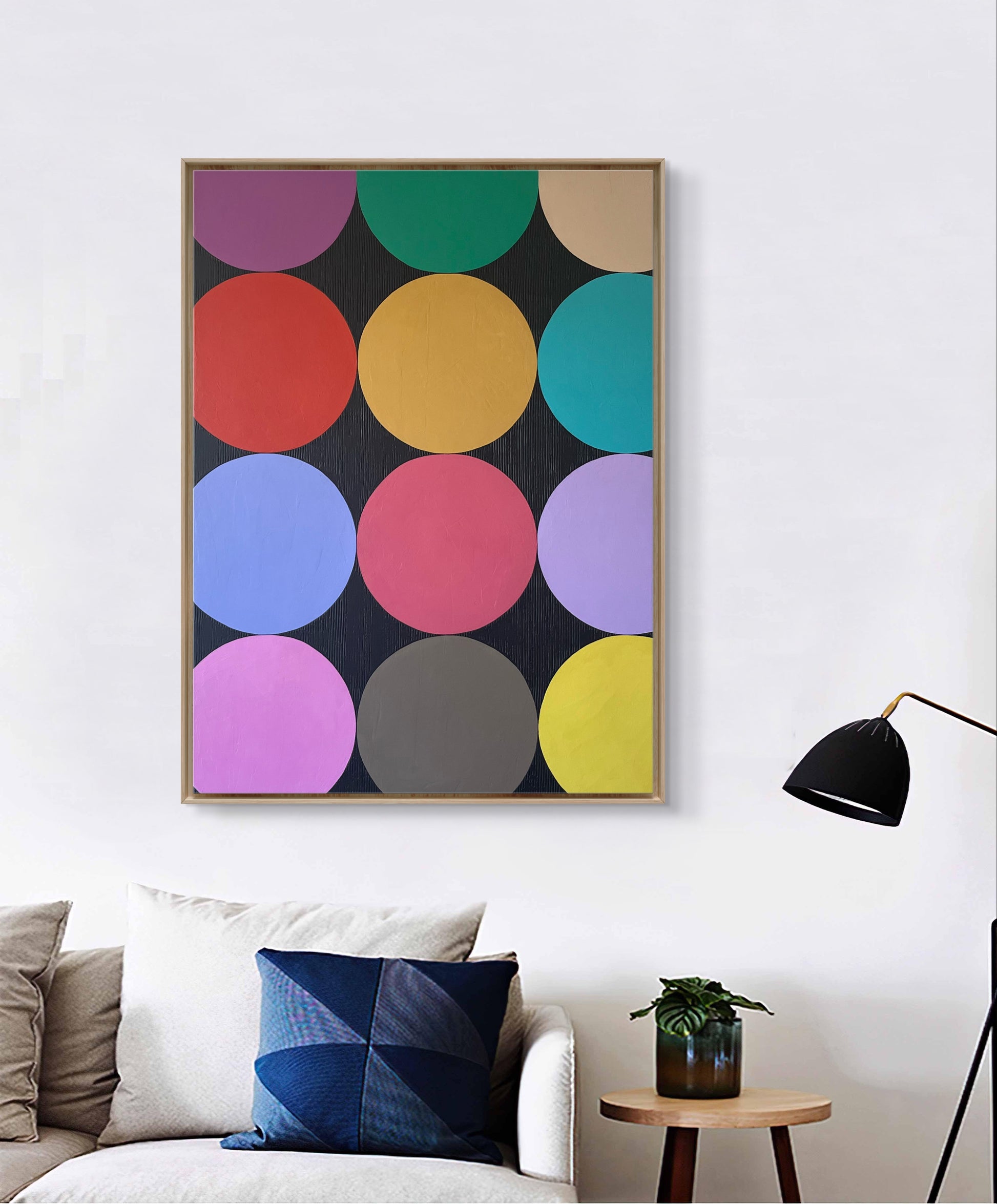 Original acrylic mixed media on canvas, sealed with protective matte varnish. 36" x 46" x .75" (Canvas size), Signed on the back. With a clear finished maple floating frame, ready to hang.
