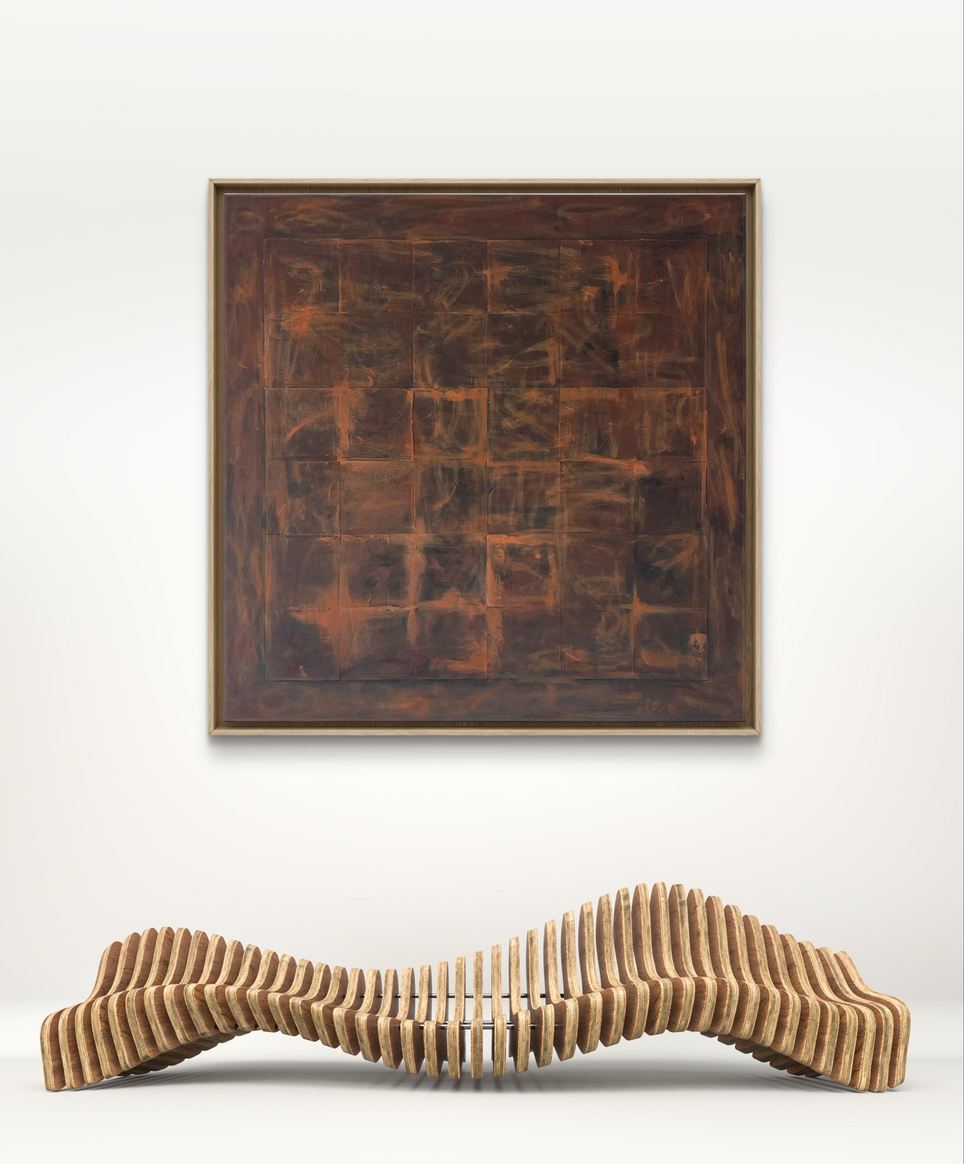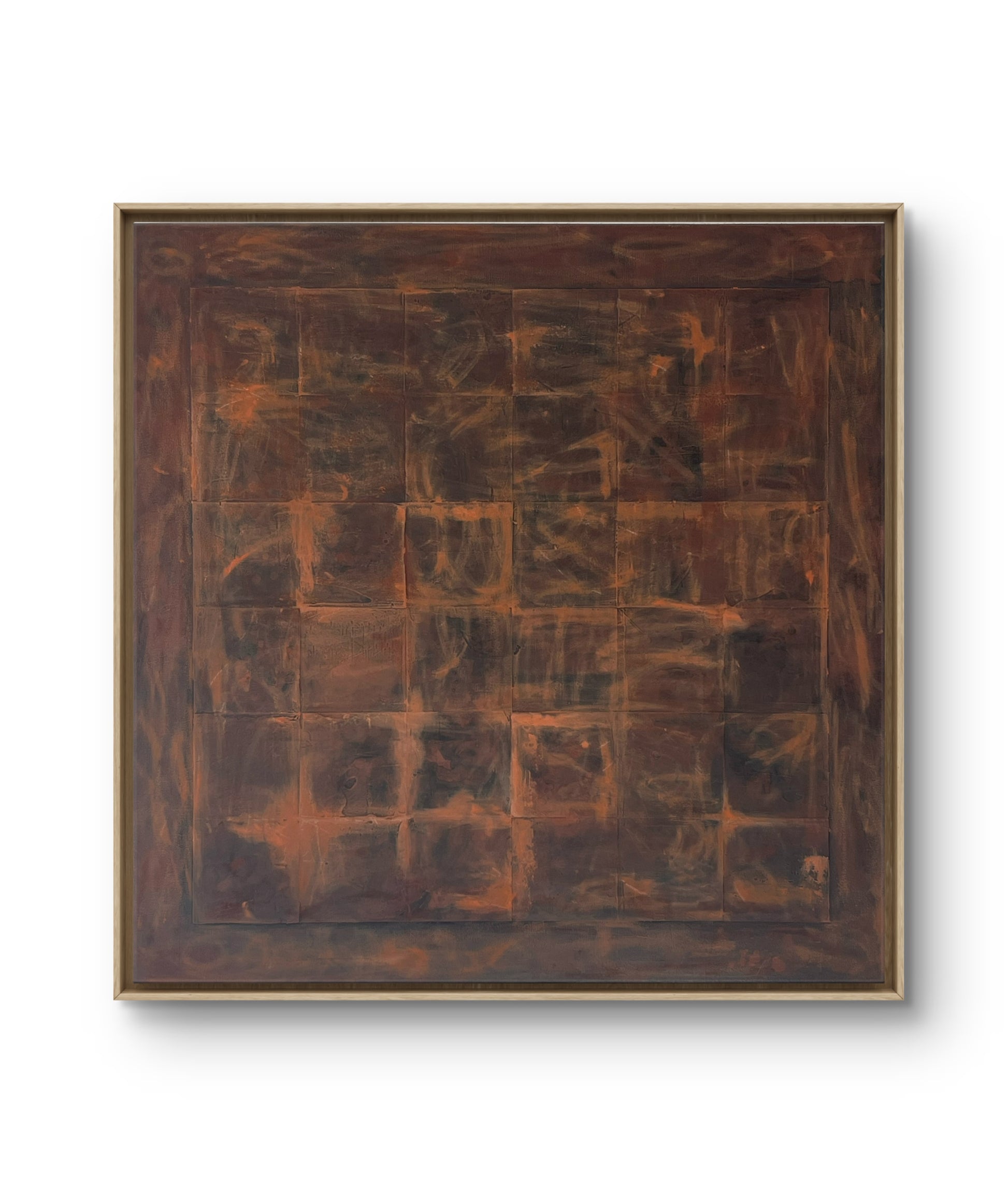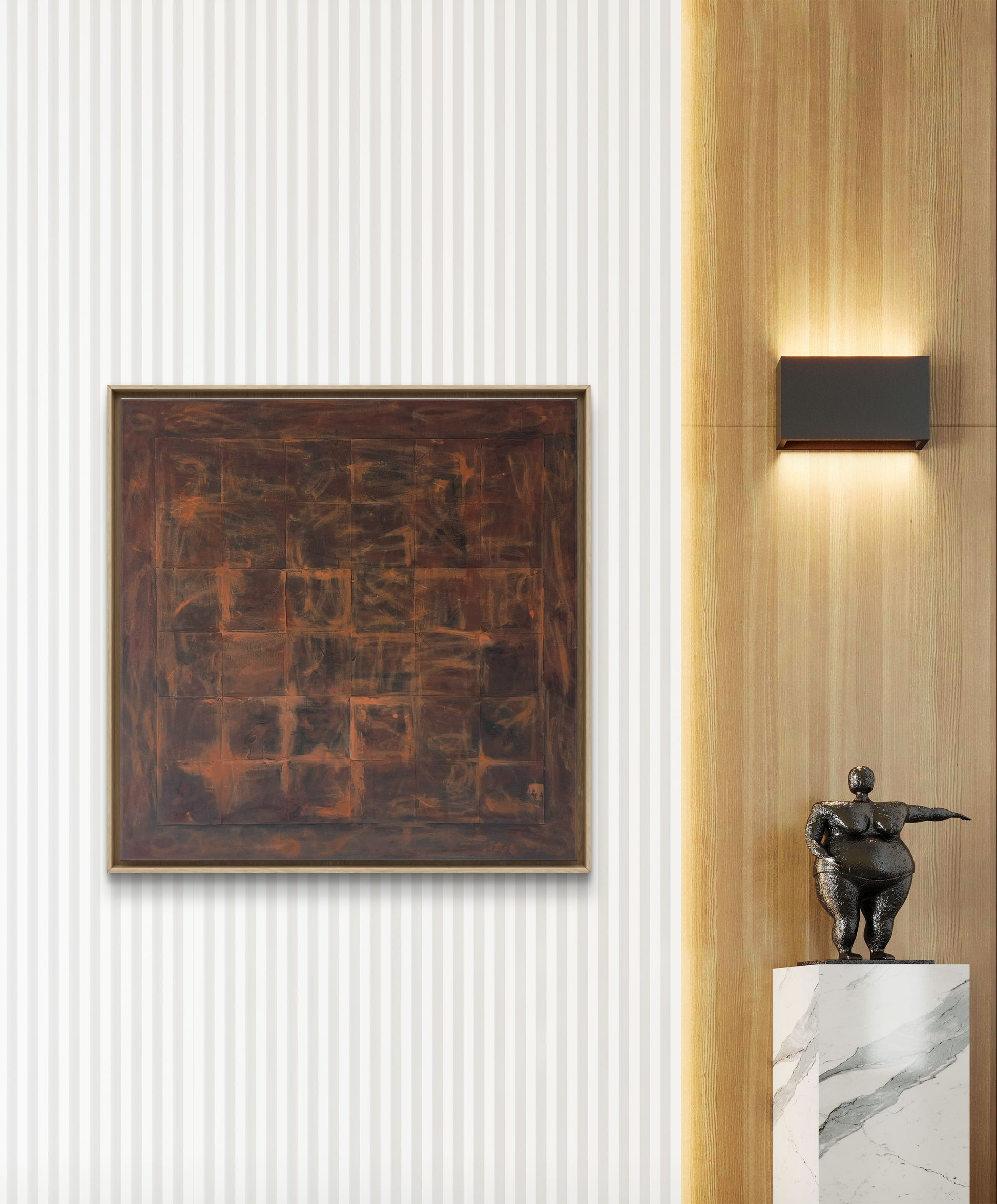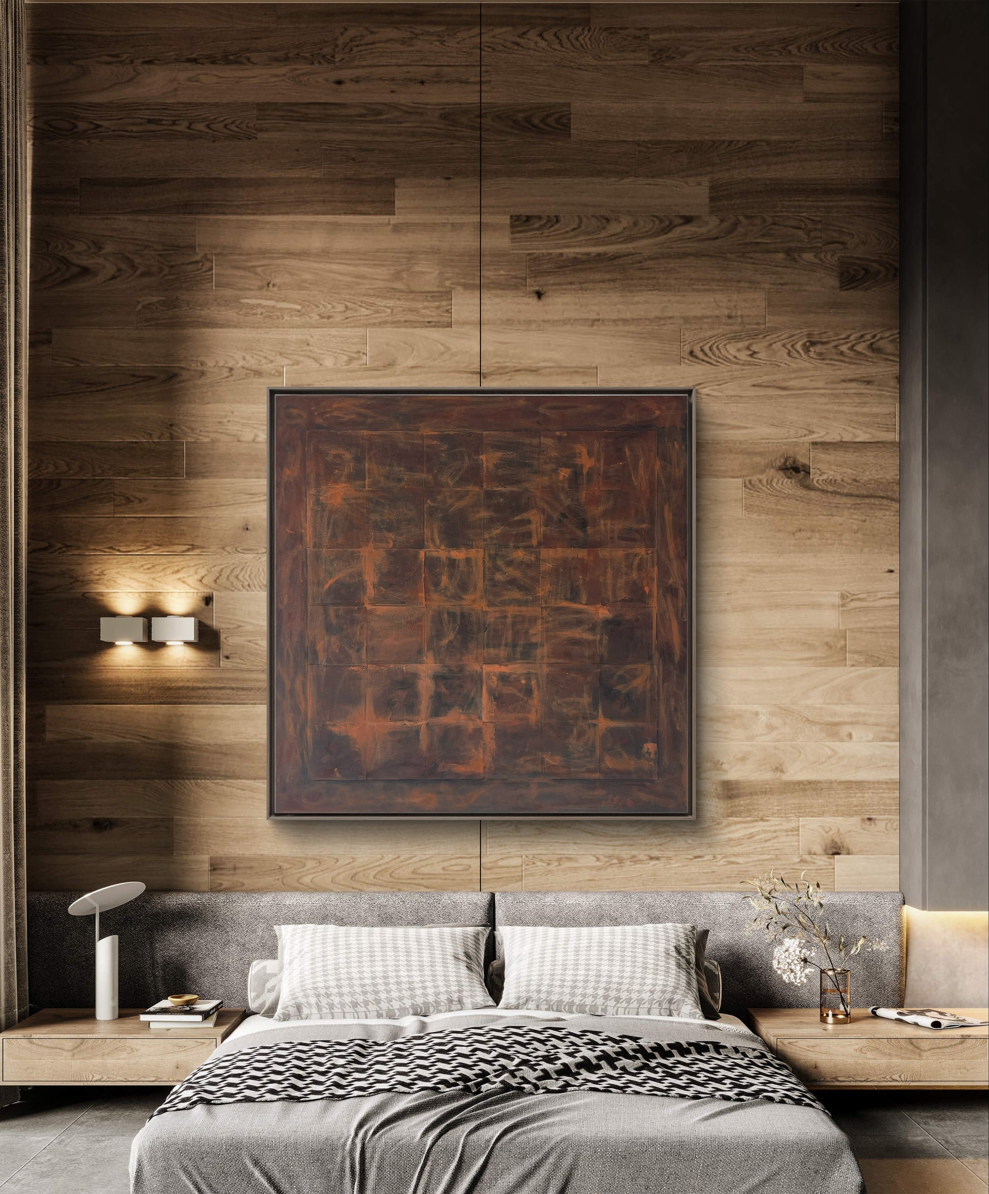 Original acrylic mixed media on canvas (Rusted technique), sealed with protective matte varnish. 36" x 36" x 1.5" (Canvas size), Signed on the back. Unframed.
