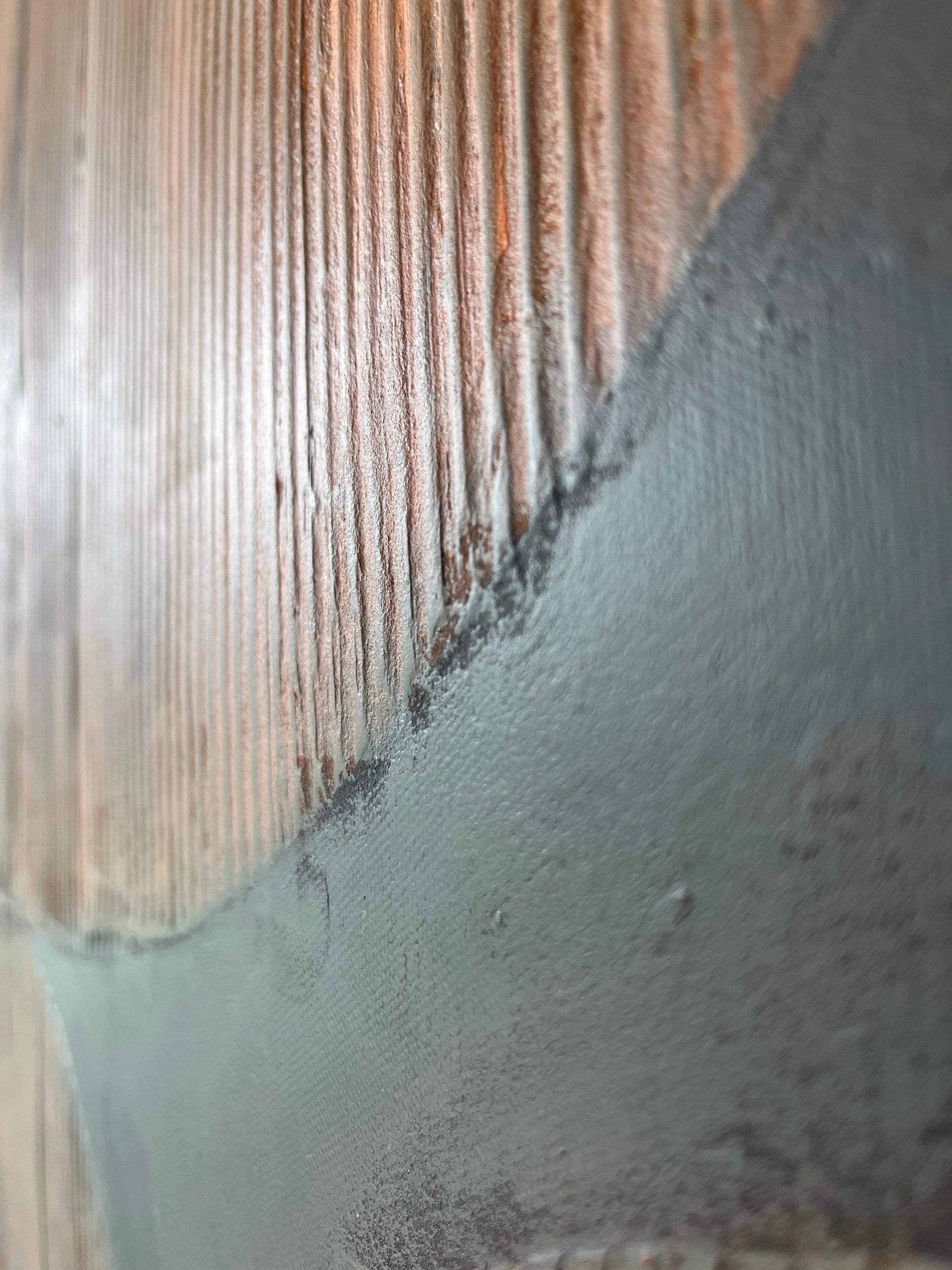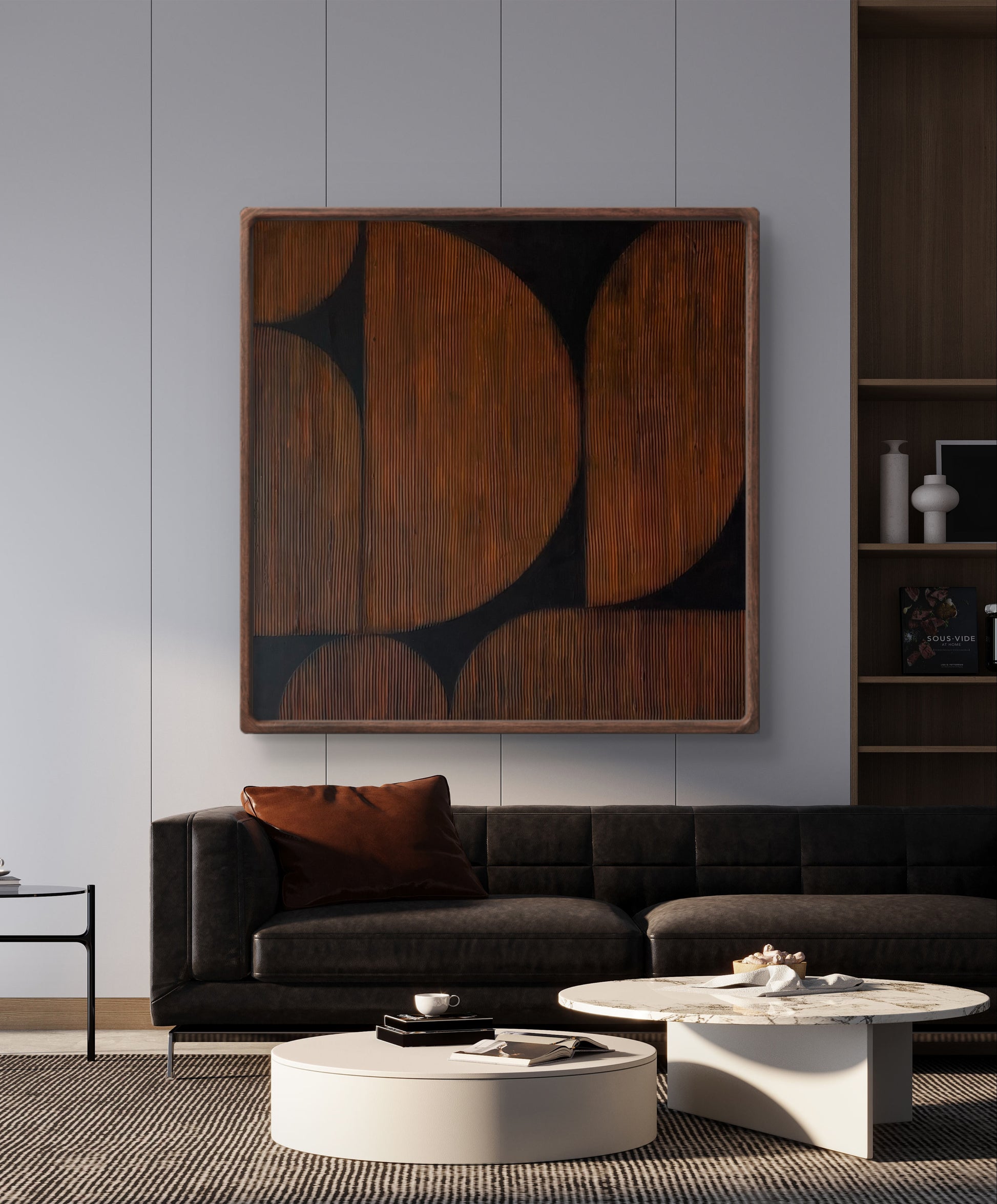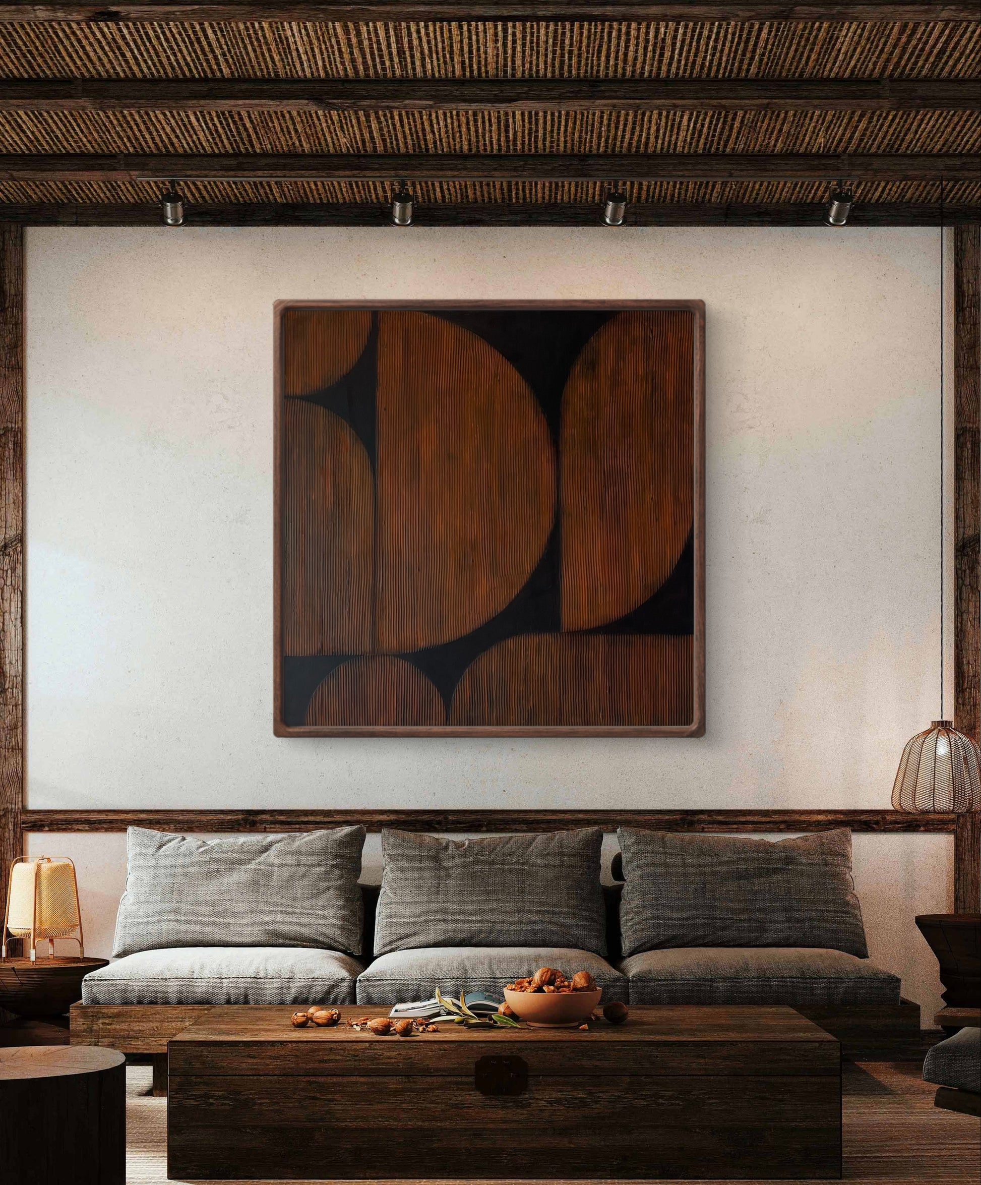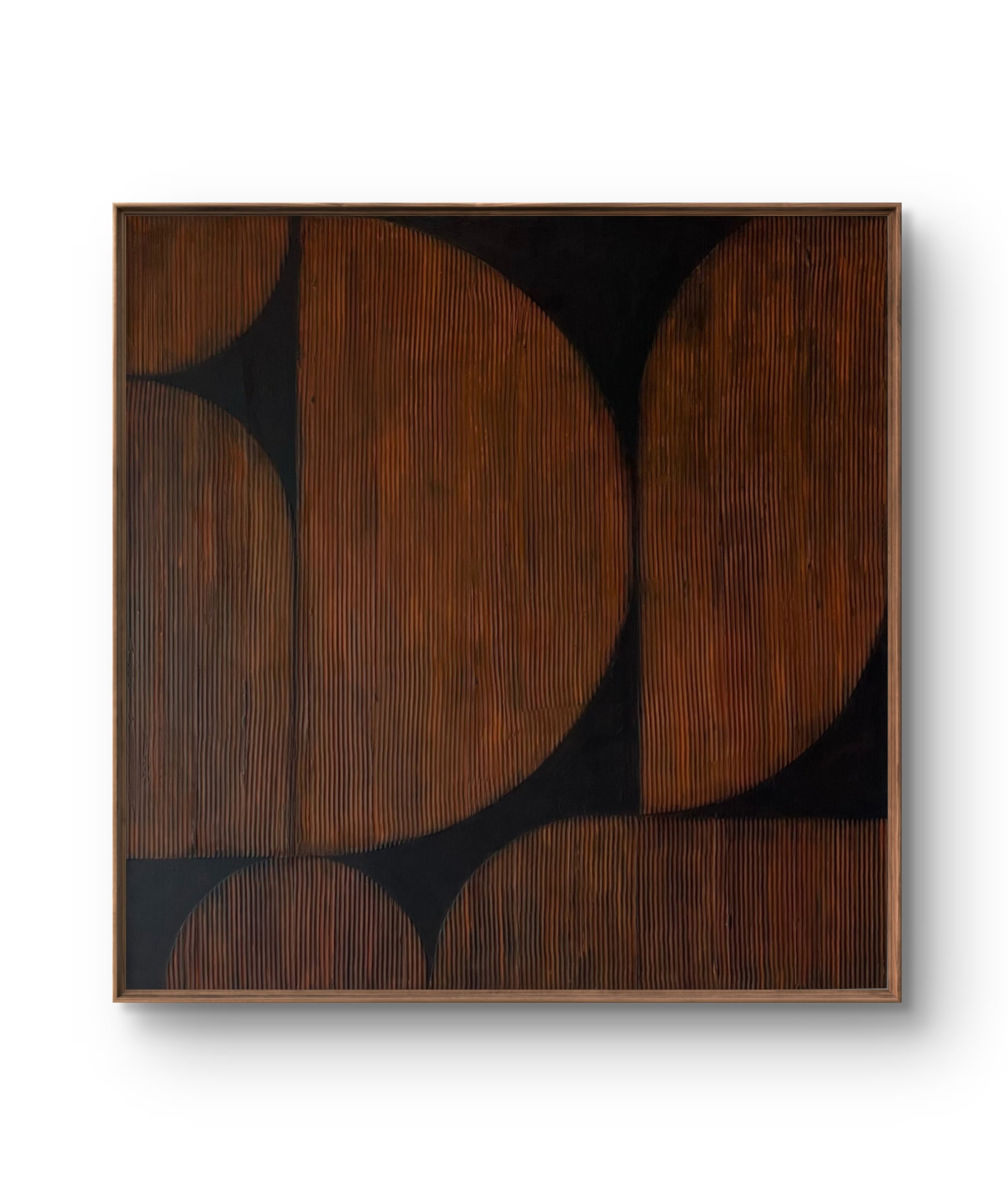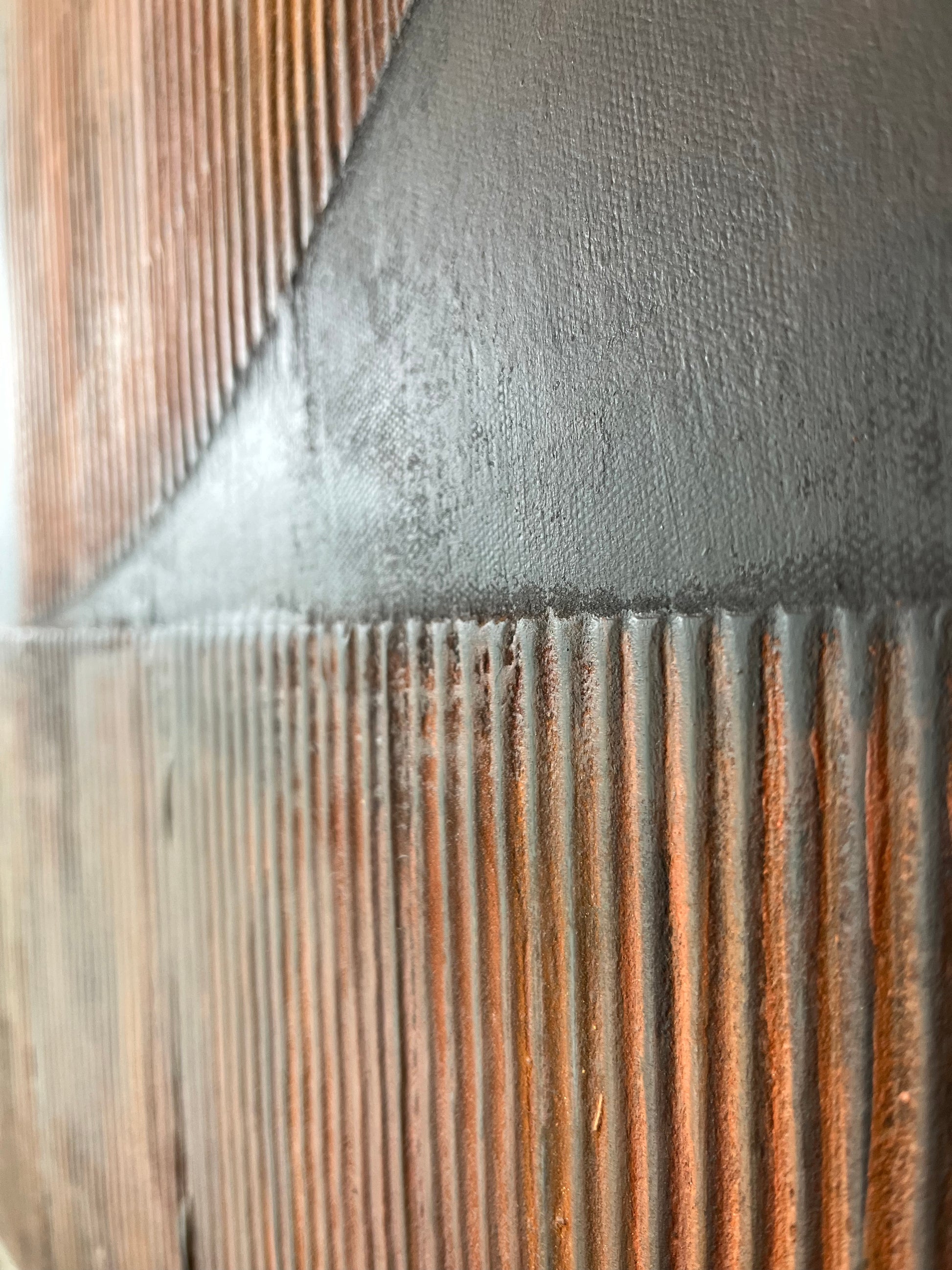 Original acrylic mixed media on canvas (Rusted technique), sealed with protective matte varnish. 40" x 40" x 1.5" (Canvas size), Signed on the back. Unframed.