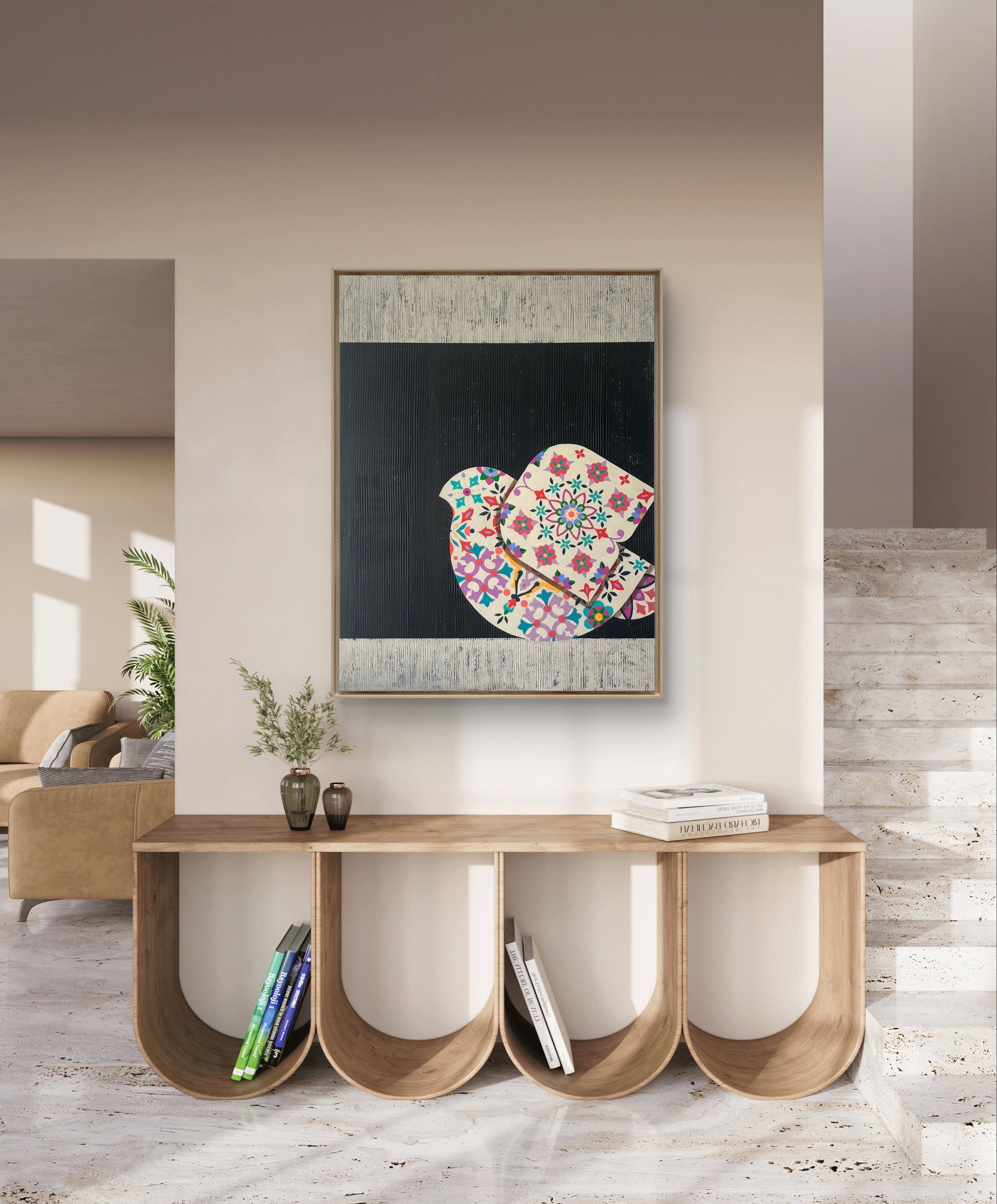 Frames are available upon request for an additional cost. Delivery and assembly typically take 7-10 business days. For inquiries, contact me at marjanzamanianart@gmail.com.